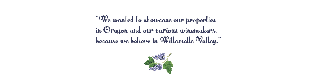 Oregon really is a new, yet exciting endeavor for the family. We wanted to showcase our properties in Oregon and our various winemakers, because we believe in Willamette Valley. We believe it’s a beautiful winegrowing region. It’s starting to get more recognition, but I think it has an impact to bring the winemakers into the market and have them really speak to Willamette – because it’s up and coming, and it’s exciting to be a part of that.