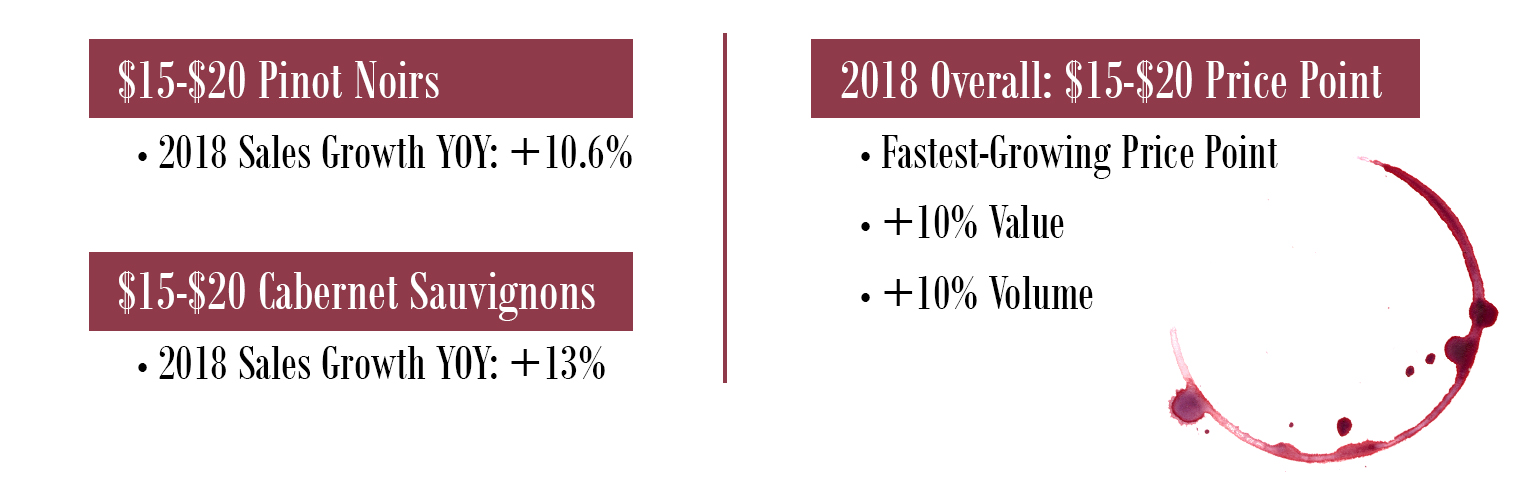 Top-Selling Price Point: $15-$20 Pinot Noirs and Cabernet Sauvignons