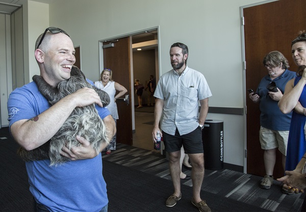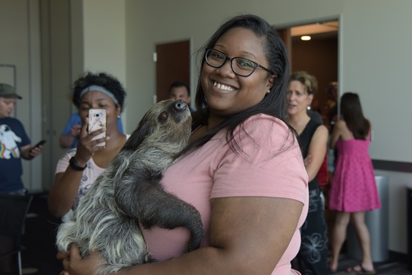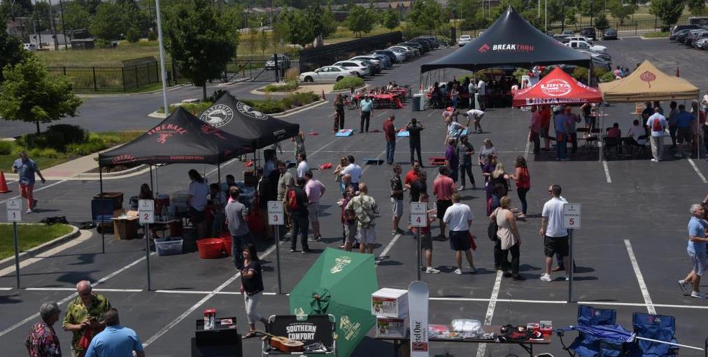 Our celebration at our Cicero campus included a bevy of fun activities, including bags, pop-a-shot, a DJ, a SLOTH (see below), stuffing Crown Royal bags with notes to be sent over to deployed troops, top shelf libations courtesy of our supplier partners and an excellent lineup of food trucks. Custodio pointed out that before the age of food trucks, associates enjoyed BBQ thanks to a familiar face.