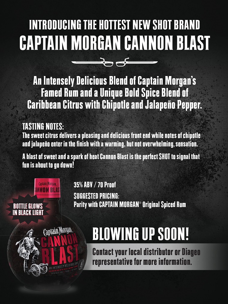 Unlike previous forms and flavors, the current wave of popular shots are driven by consumer demand want for spirits that are appealing rather than a challenge to enjoy. Captain Morgan Cannon Blast provides an opportunity to harness the power of this momentous trend in our industry in a form consumers have not seen before.