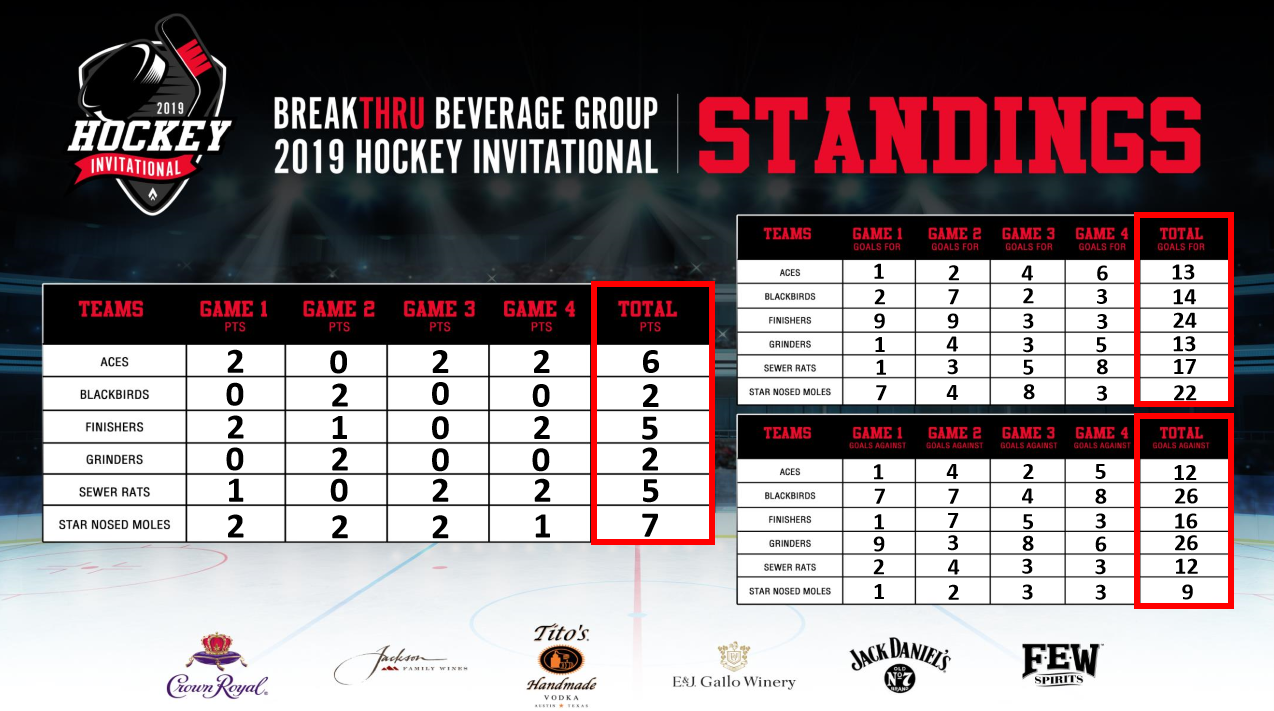The Moles, led by team captain Kevin Roberts, put the biscuit in the basket a total of 22 times during their four games, while only yielding nine pucks to the back of the net.