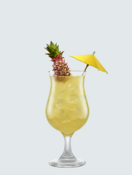 Garnish: Pineapple wedge of mini pineapple with mini umbrella