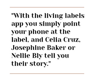 When we picked the women for the labels, I was not familiar with all of them or the details of their stories. With the living labels app you simply point your phone at the label, and Celia Cruz, Josephine Baker or Nellie Bly tell you their story. You can dive into each person and really get a sense of their character.