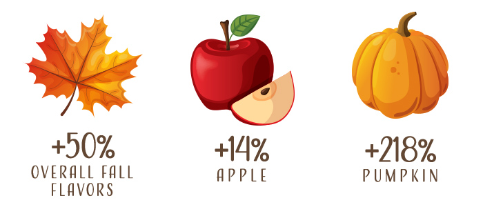 Fall kicks off the biggest quarter for sales across the country, and traditional flavors of the season are perennial winners with consumers. Flavored alcohol products have enjoyed steady growth every year since 2012,* and Nielsen data shows serious gains in volume growth with those flavors in the last year.